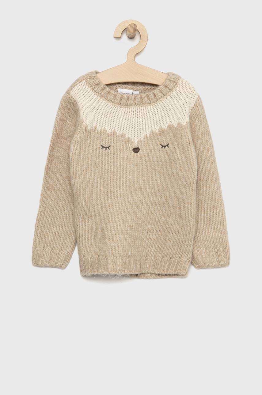 Детский свитер с примесью шерсти Name it цвет бежевый..